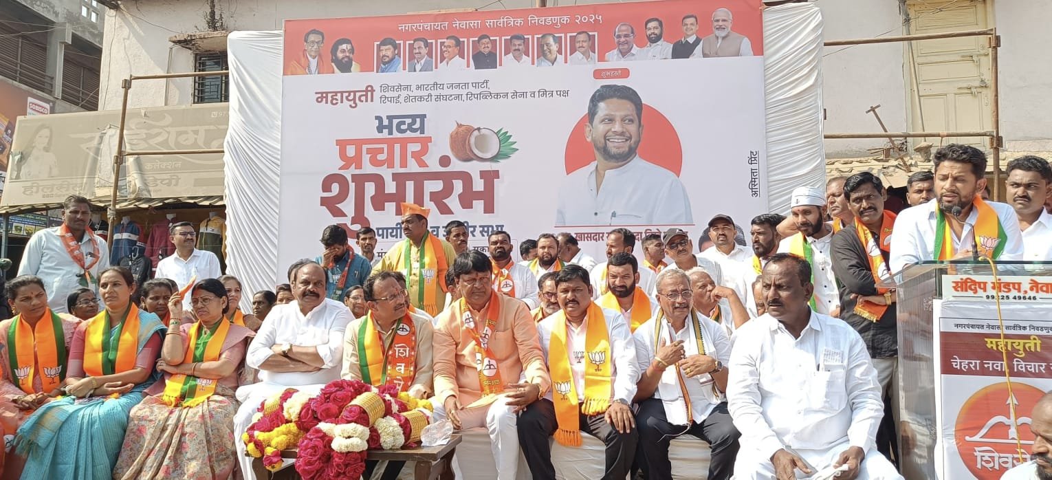 यावेळी बोलताना आमदार लंघे म्हणाले की या निवडणुकीत शहराचा चेहरा मोहरा बदलण्याचे स्वप्न आहे. नेवासे ही ऐतिहासिक भूमी असून अनेक वर्षापासून ज्यांनी सत्ता भोगल्या त्यांनी नागरिकाच्या तोंडाला पाने पुसली आहे. तेच तेच चेहरे समोर आणून जनतेचा भ्रम निराश केले जात असून ज्या पक्षाला शेंडा बुडुक नाही असा पक्षाला निवडून देवू नये गल्ली ते दिल्ली महायुतीची सत्ता असल्याने आमच्या उमेदवारांना निवडून द्यावे.
